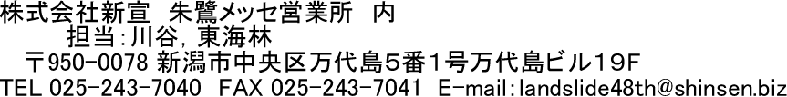 平成21年8月25日(火)から8月28日(金)まで新潟県新潟市において開催する「(社)日本地すべり学会・第48回研究発表会及び現地見学会」において,機器や資料を用いた地すべりに関する新技術紹介セッションを予定しております.